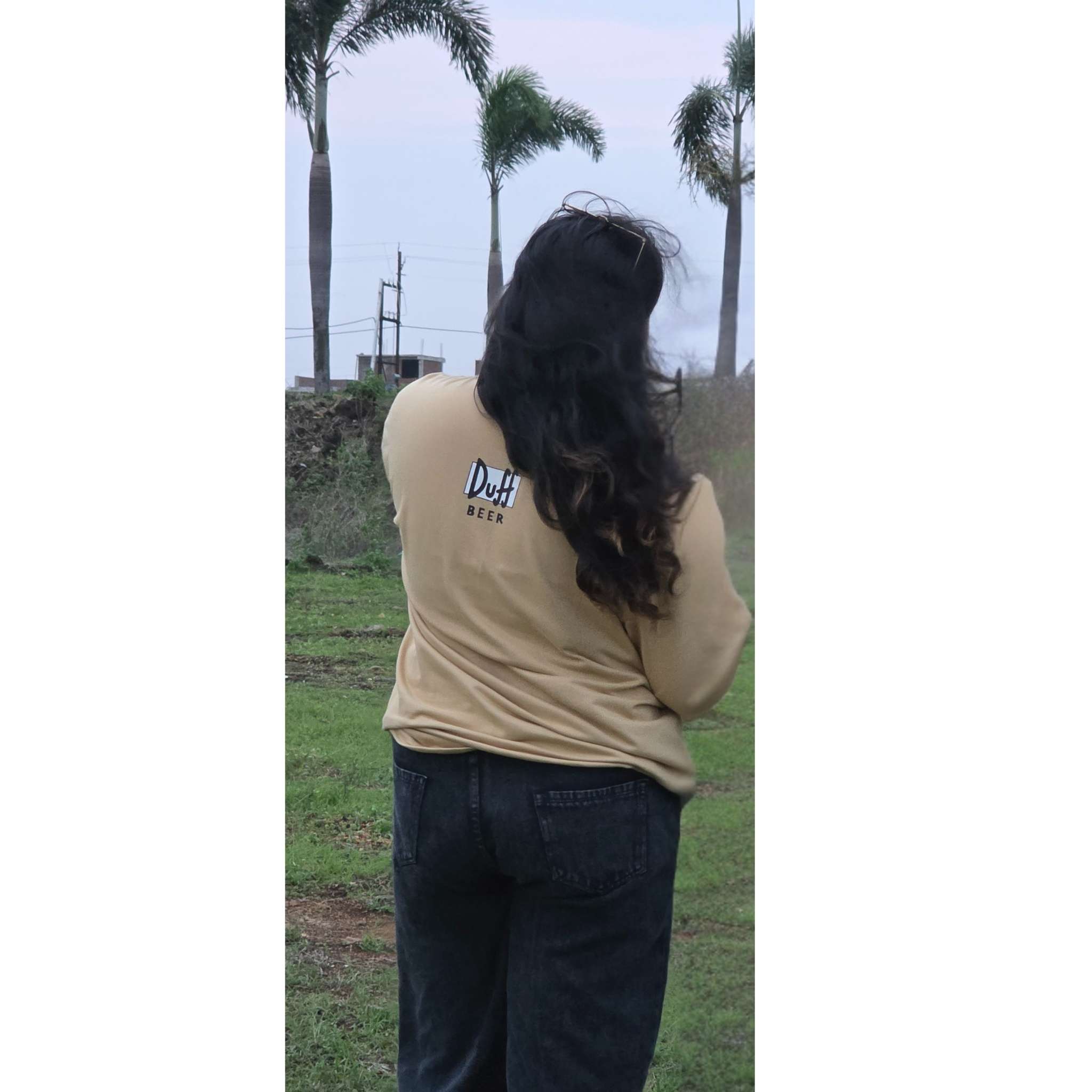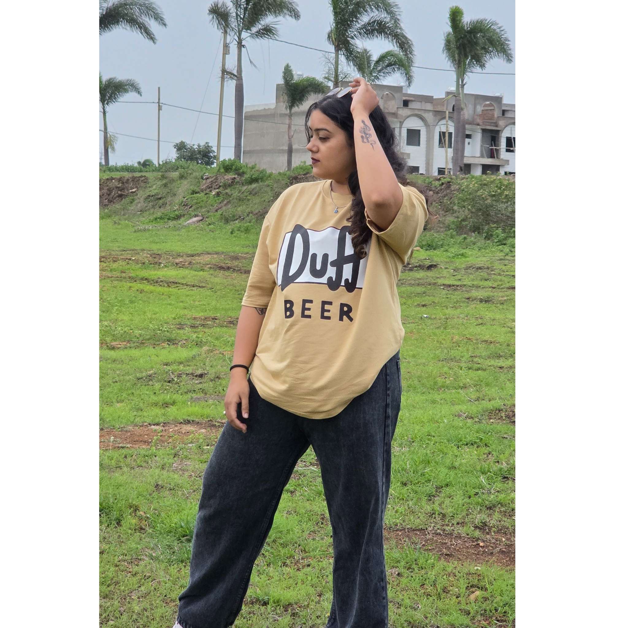 Crack open a cold one and channel classic cartoon vibes with the Duff Beer Oversized Graphic T-Shirt. Featuring the instantly recognizable “Duff Beer” logo emblazoned in bold lettering, this beige tee pays homage to one of TV’s most iconic fictional beverages. The front sports a subtle mini Duff Beer logo, while the back displays the full, eye-popping graphic—making it a must-own for collectors, pop culture fans, and lovers of quirky statement style alike.